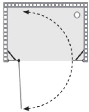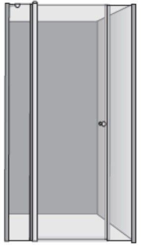 מקלחון חזיתי בעלי שני קירות קבועים ודלת חזית ביניהם ימין/שמאל הנפתחת החוצה/פנימה עד 90 מעלות על ציר פתיחה עולה/יורד לפתיחה מקסימלית לשני הכיוונים.