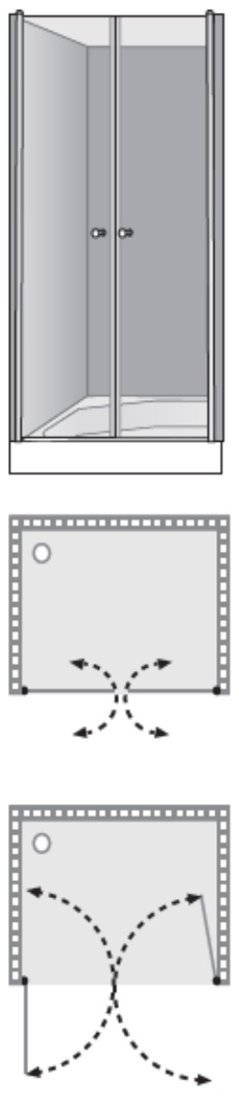 מקלחון חזיתי הכולל שתי דלתות חזית הנפתחות פנימה/החוצה 90 מעלות על ציר פתיחה עולה/יורד לפתיחה מקסימלית של הדלתות לשני הכיוונים.