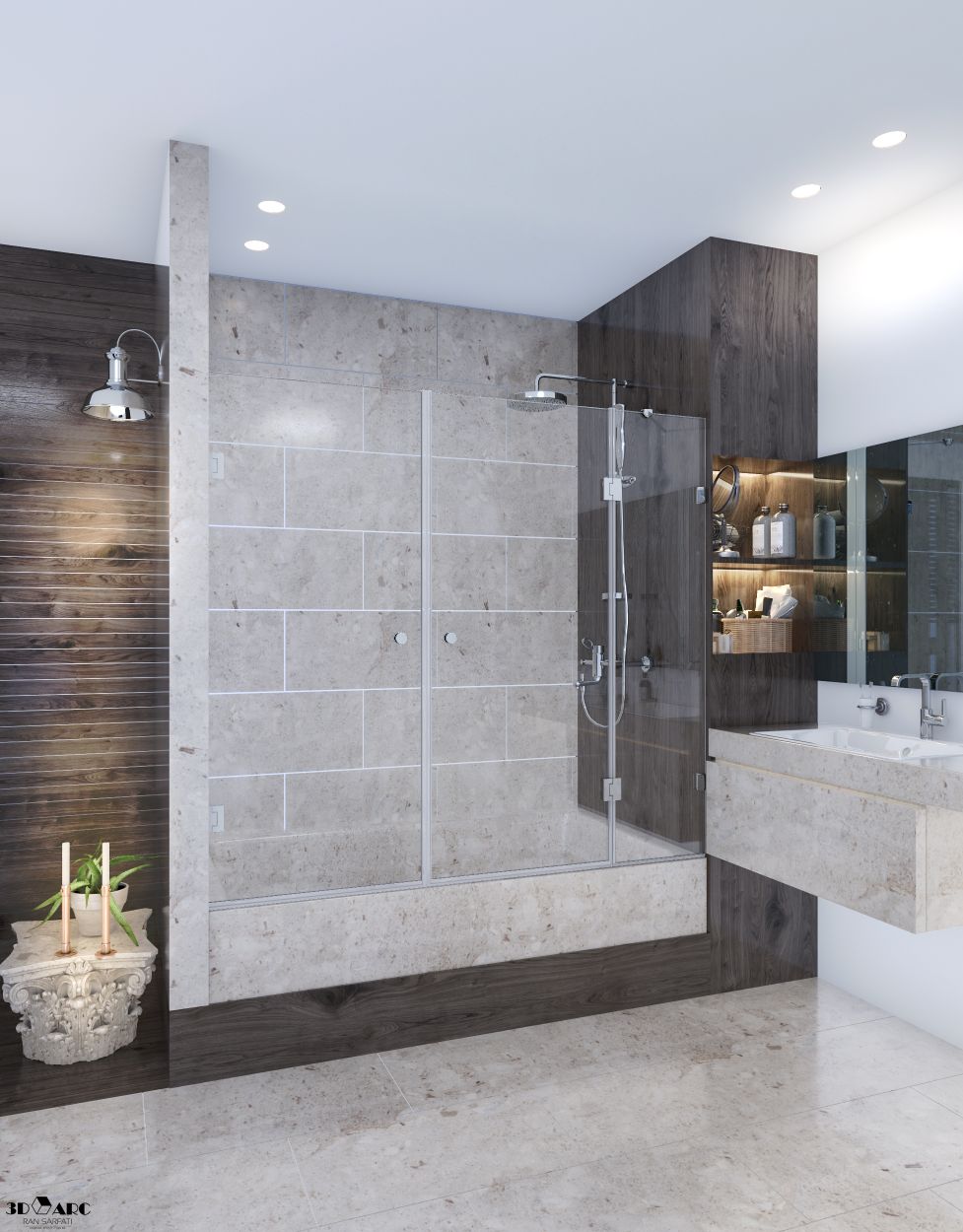 חזית סגירה לאמבטיה הכוללת שתי דלתות על צירי גלובוס בשילוב דופן שמאל/ימין קבועה