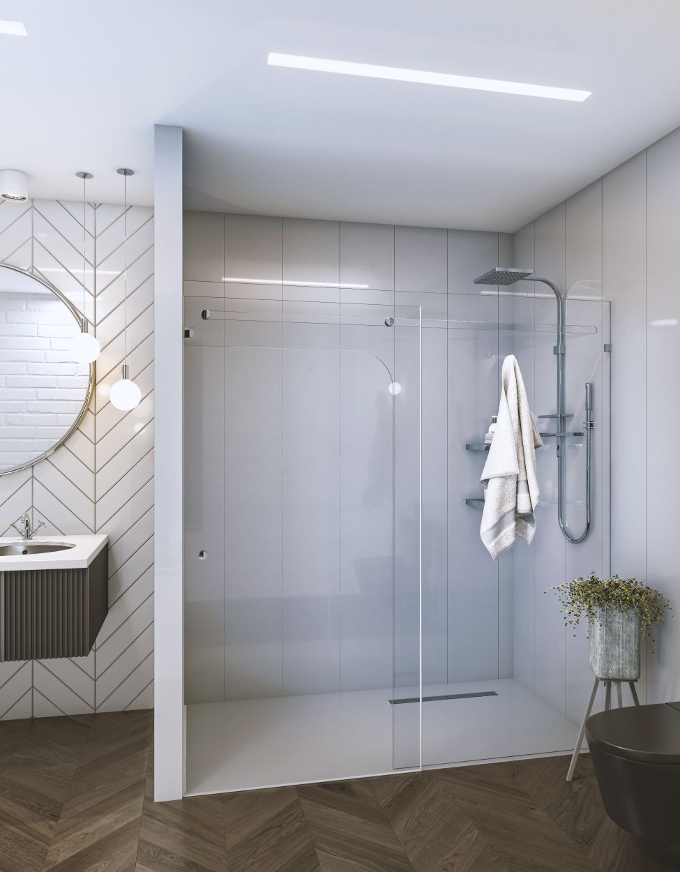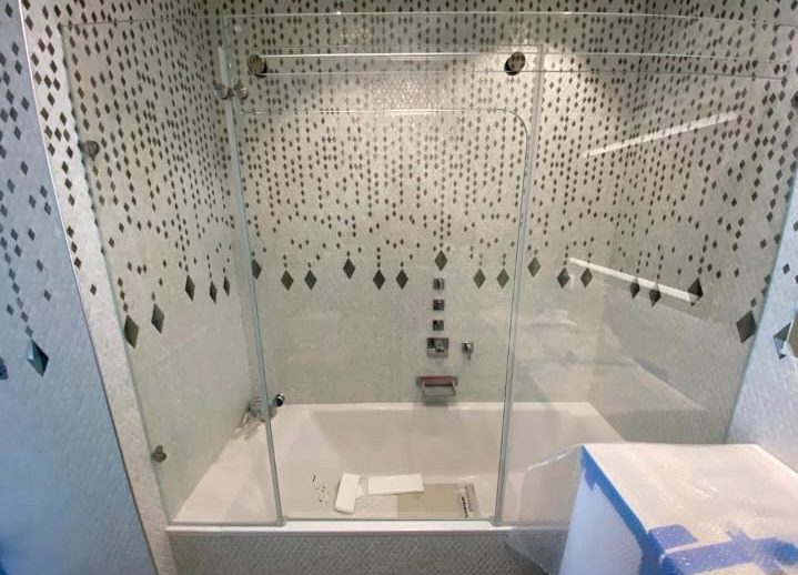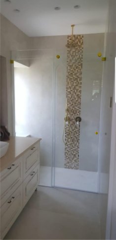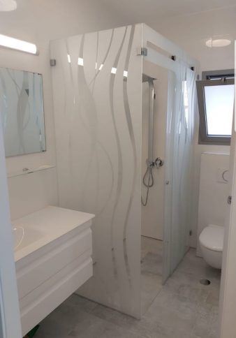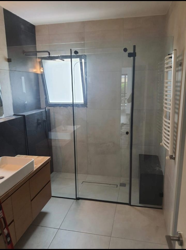 - הדפנות הקבועות מיוצרות מזכוכית 8 מ"מ, הדלתות מיוצרות מזכוכית 8 מ"מ.